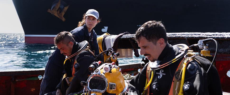 Rodríguez construye bien los vínculos familiares y los conflictos personales. La relación entre los hermanos es sólida y creíble; un legado paterno y una posibilidad de Estrella para trabajar en Vigo, alejada de su hermano; hay códigos, silencios y lealtades que sostienen el relato. También está bien lograda la atmósfera del trabajo submarino: opresiva, técnica, peligrosa, aunque no de la misma manera que sucedía en la película sueca Breakin Surface, cuya historia entre dos hermanas también se desarrolla dentro del universo del buceo.